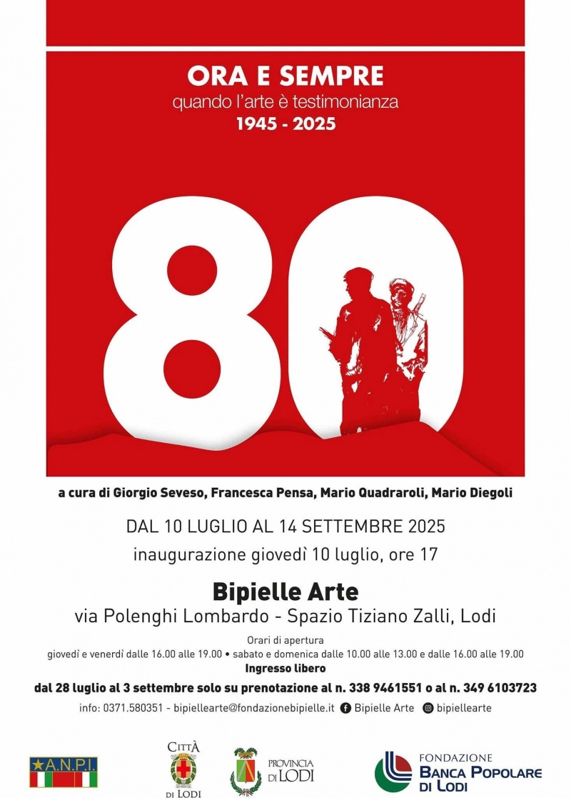 Dal 10 luglio al 14 settembre la Fondazione Banca Popolare di Lodi presenta la mostra "ORA E SEMPRE. Quando l’arte è testimonianza 1945-2025". Inaugurazione giovedì 10 luglio alle 17
