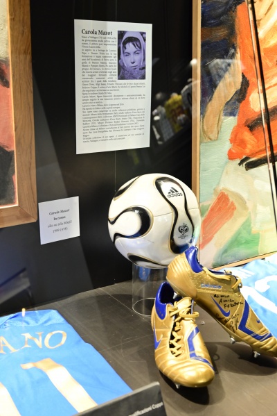 San Siro Museum in occasione delle Olimpiadi Milano Cortina ospita alcuni archivi d'arte del Novecento storicizzati sul territorio milanese. Le sei opere di Carola Mazot scelte specificamente per questa mostra dalla serie degli "Atleti" e realizzate attorno agli anni Novanta, ritraggono calciatori e sono rappresentative di questo periodo: dalla caratteristica linea diagonale "Calciatore in viola" i volti espressivi dei calciatori decisi a raggiungere l'obbiettivo, i colori accesi che aumentano l'effetto vibrante delle scene.